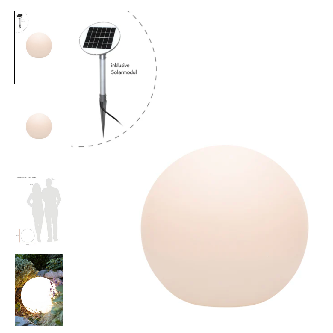Dimensions: 40cm diameter globe. Includes 4 metre long cable and solar spike. Generally available in our Monkstown location.