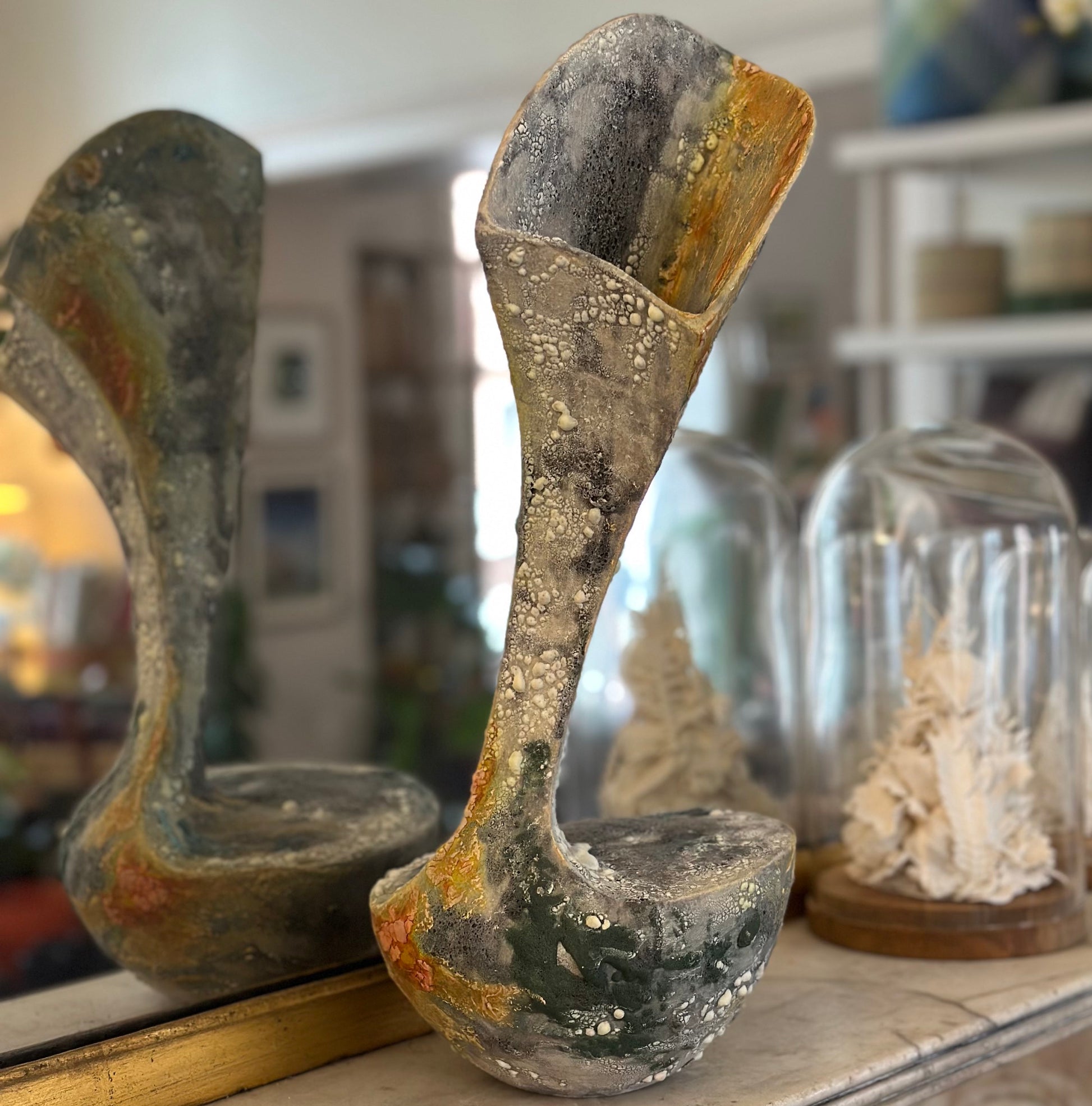 Her work explores the fragile charm found in nature’s process of decay and regeneration. She explores the rugged beauty found in the cycle of decay and renewal.