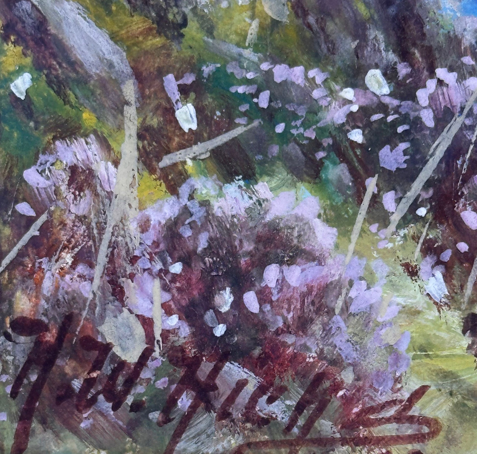 Coastal landscape with birds, heather and maritime cliffs. Herbert William Hicks was a British artist who specialised in landscapes of the south and west coast of England. This vibrantly coloured, well executed work is typical of his work.