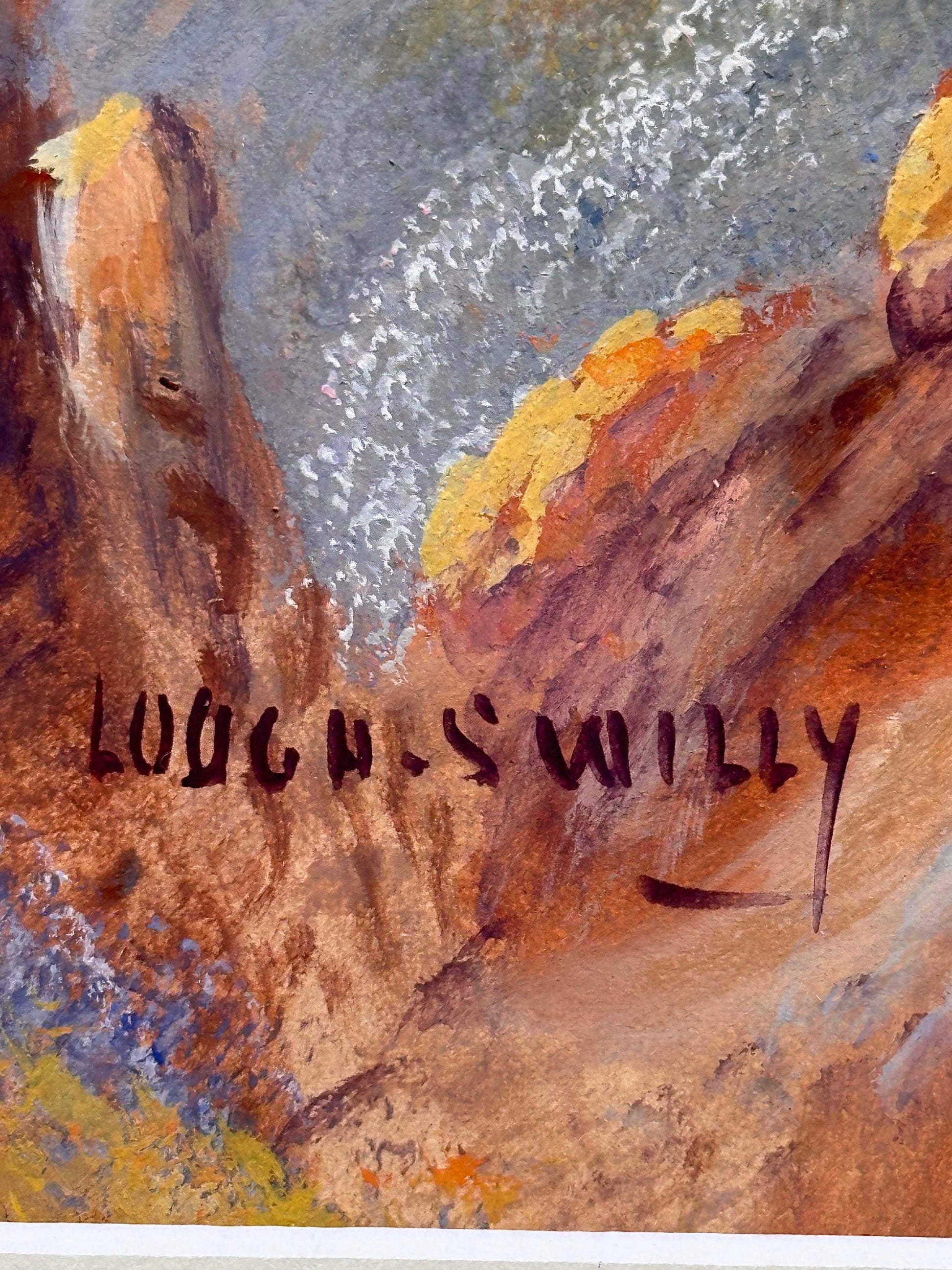 Lough Swilly in County Donegal is the subject of this dramatic landscape, painted in the late nineteenth or early twentieth century. Wonderfully vivid colours, which are as clear and fresh as they would have been when first applied. This is a skillfully executed and perfectly preserved piece, rich in detail and infused with the colours and light of the north-west of Ireland.