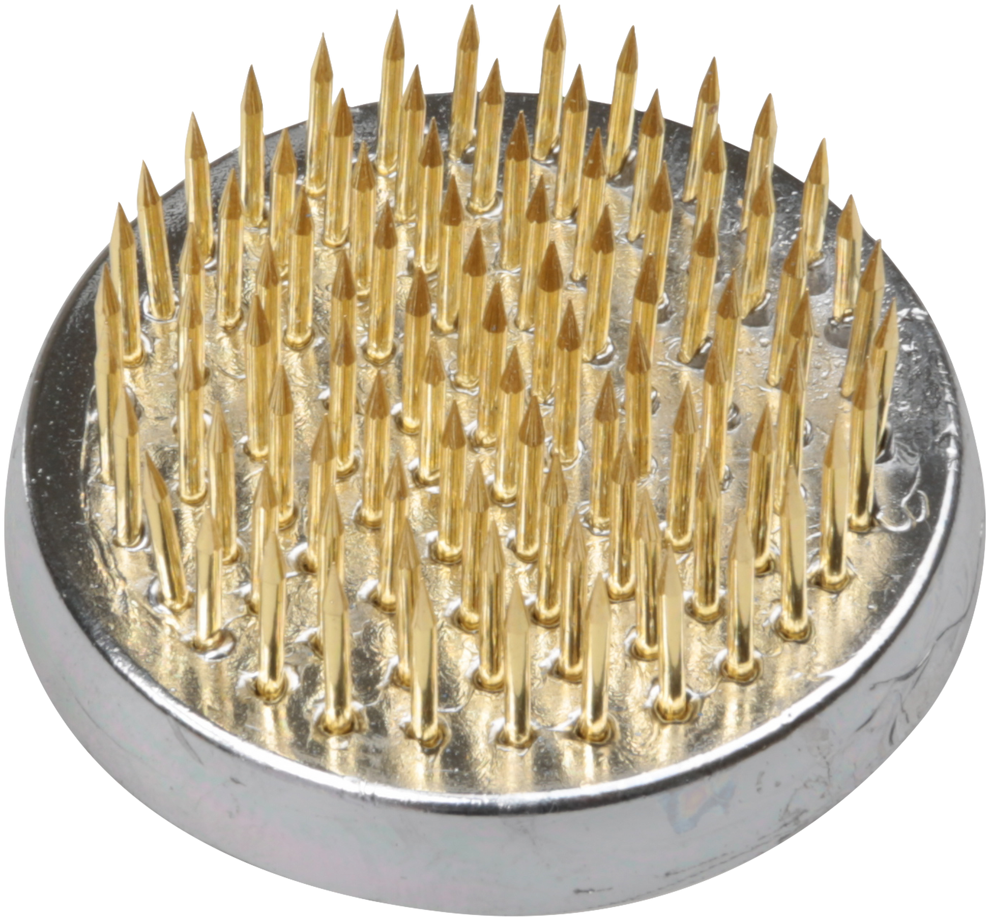 Medium kenzan ('flower frog') used for flower arranging or Ikebana flower displays. A good alternative to oasis - waste free and endlessly reusable. Simply push a twig or flower stem into or between the brass spikes. Immerse in water in a vase or dish. Made by Niwaki in Japan, 70g. 36mm diameter.