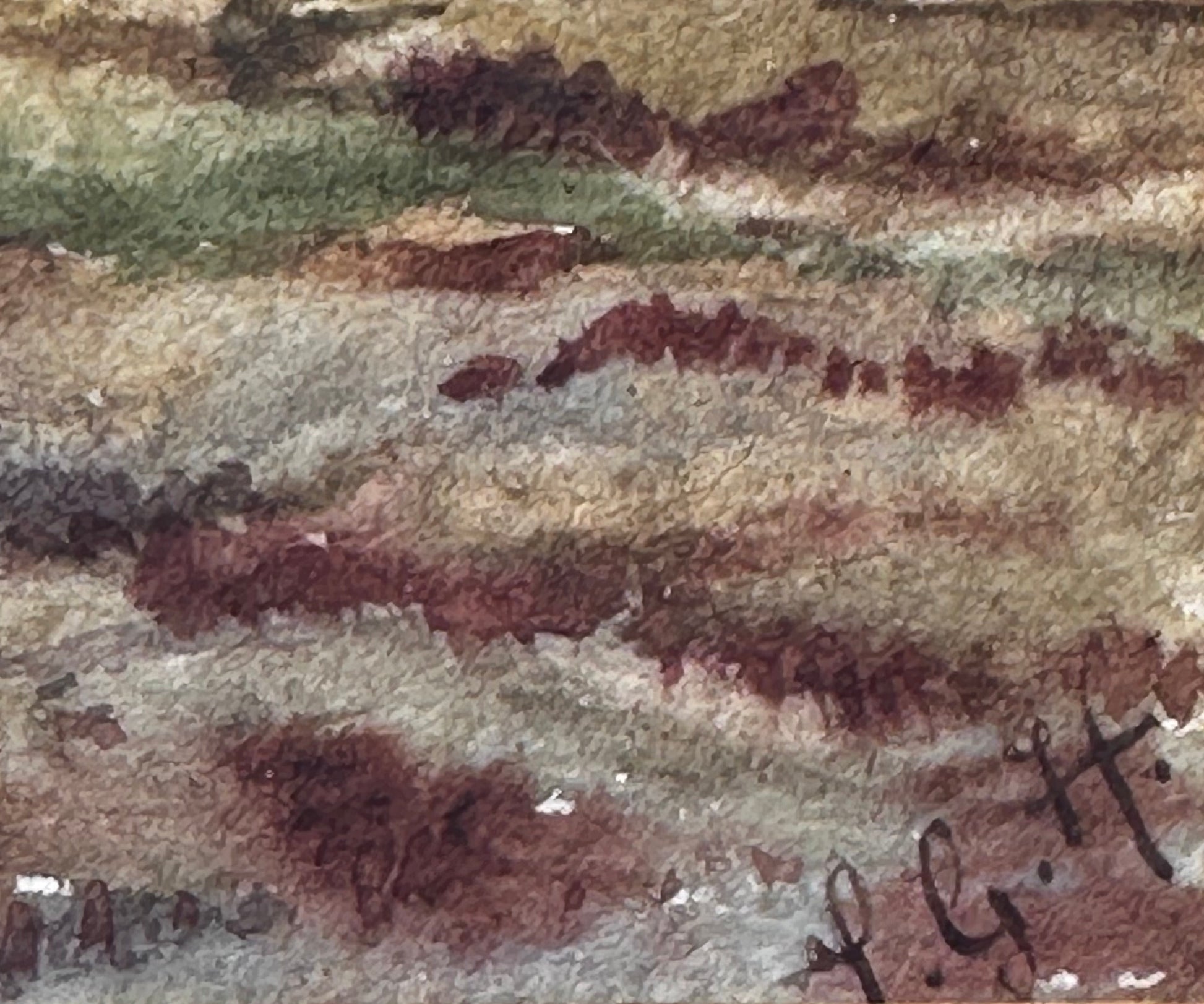 Initialled bottom right. Approx 16 x 12cm. Watercolour. In original frame with gold mount. Sticker on reverse reads: "G. Webb, 4 Crampton Quay, Dublin, PIcture Dealer, Frame manufacturer..."