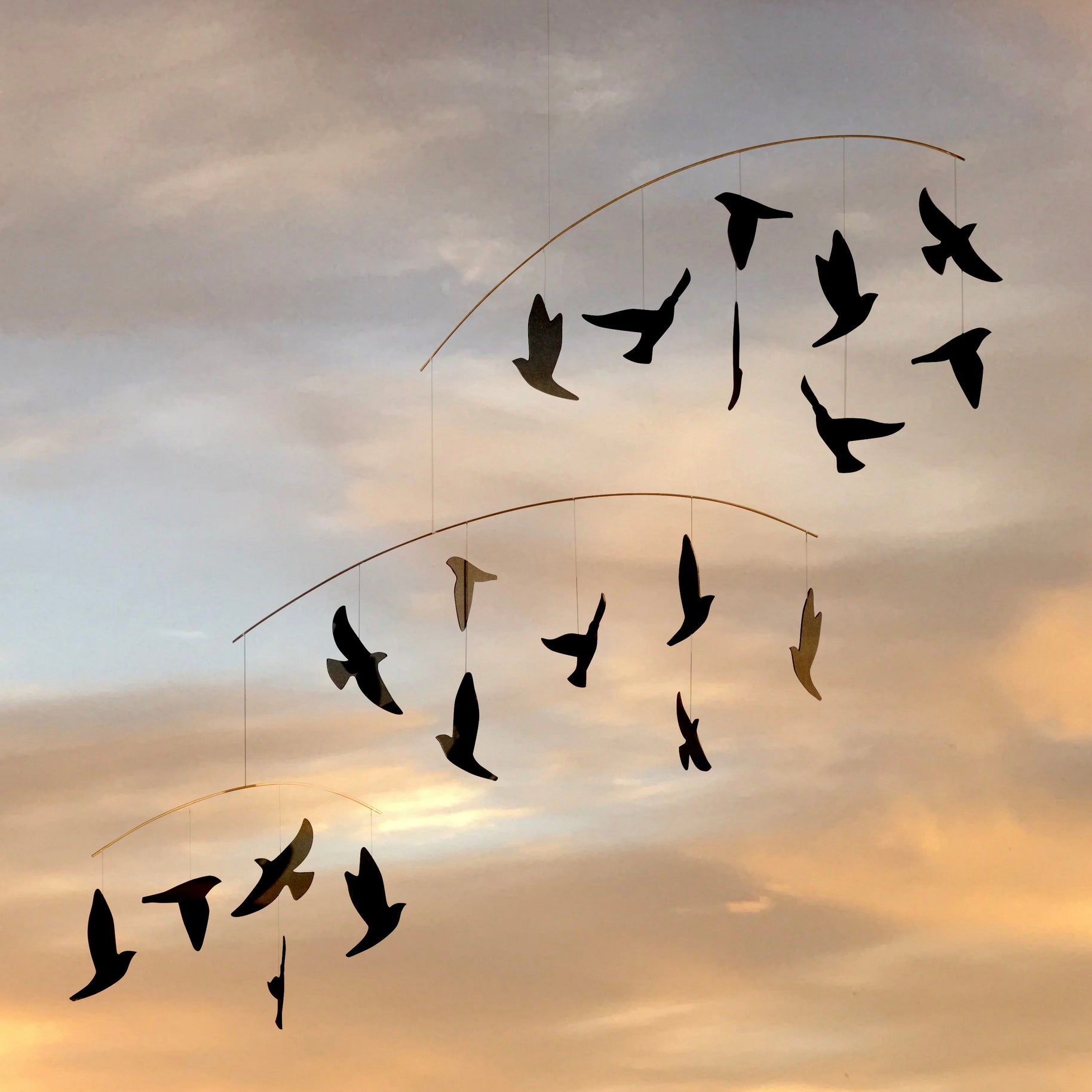Livingly mobiles are hand made in Denmark. Made from FSC certified paper and brass. Mobiles are a fantastic way to bring life and movement into your home. They spin and dance in the air, creating a calm and fascinating atmosphere. Ideal for adults, children, and babies, as they capture attention and bring a gentle calmness to any room.