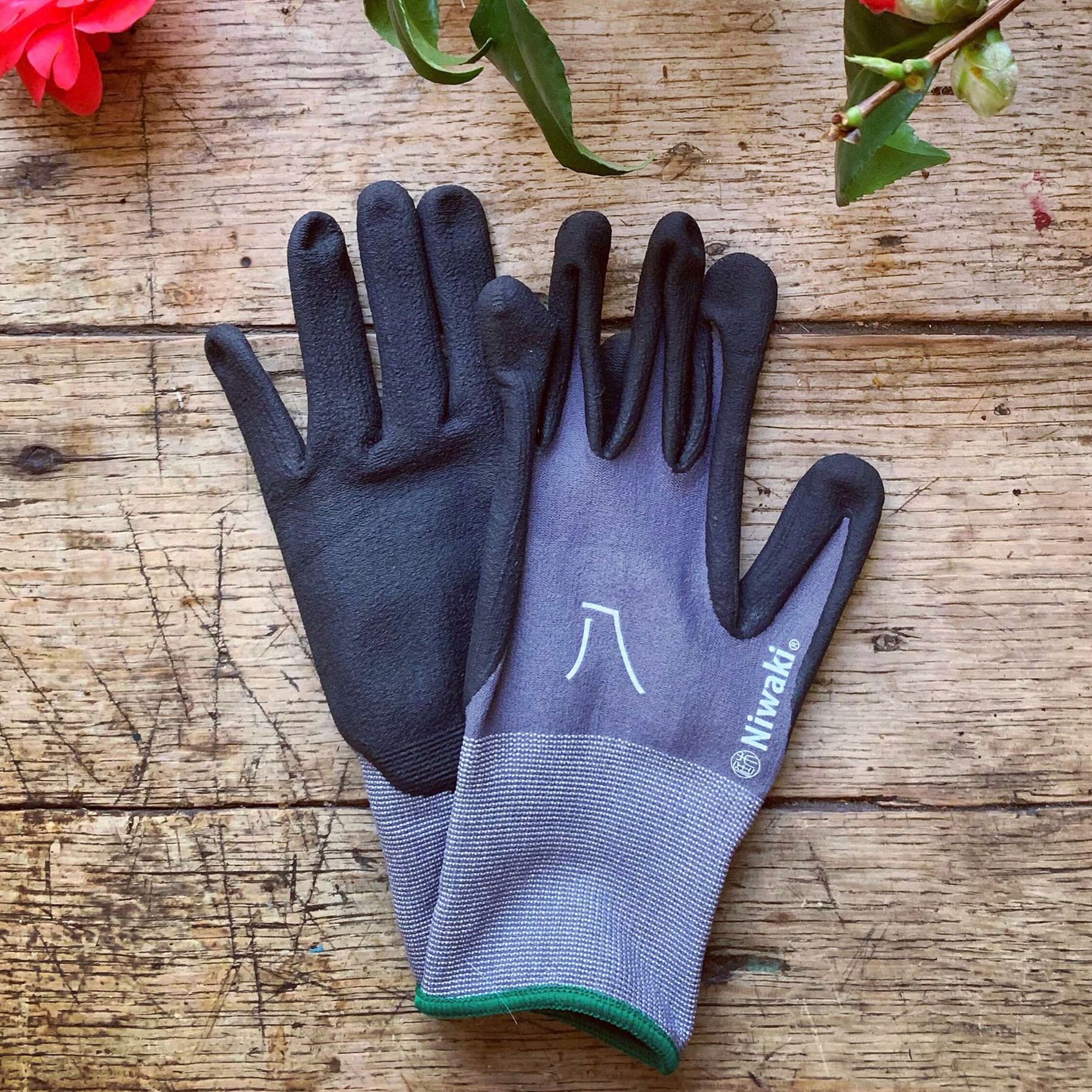 Strong, comfortable gardening gloves from Niwaki. Ideal for everything outdoors from pruning to weeding, mowing the lawn to potting up. Nicely fitted cuffs, firm, non-slip grip. Made from washable spandex and nylon.