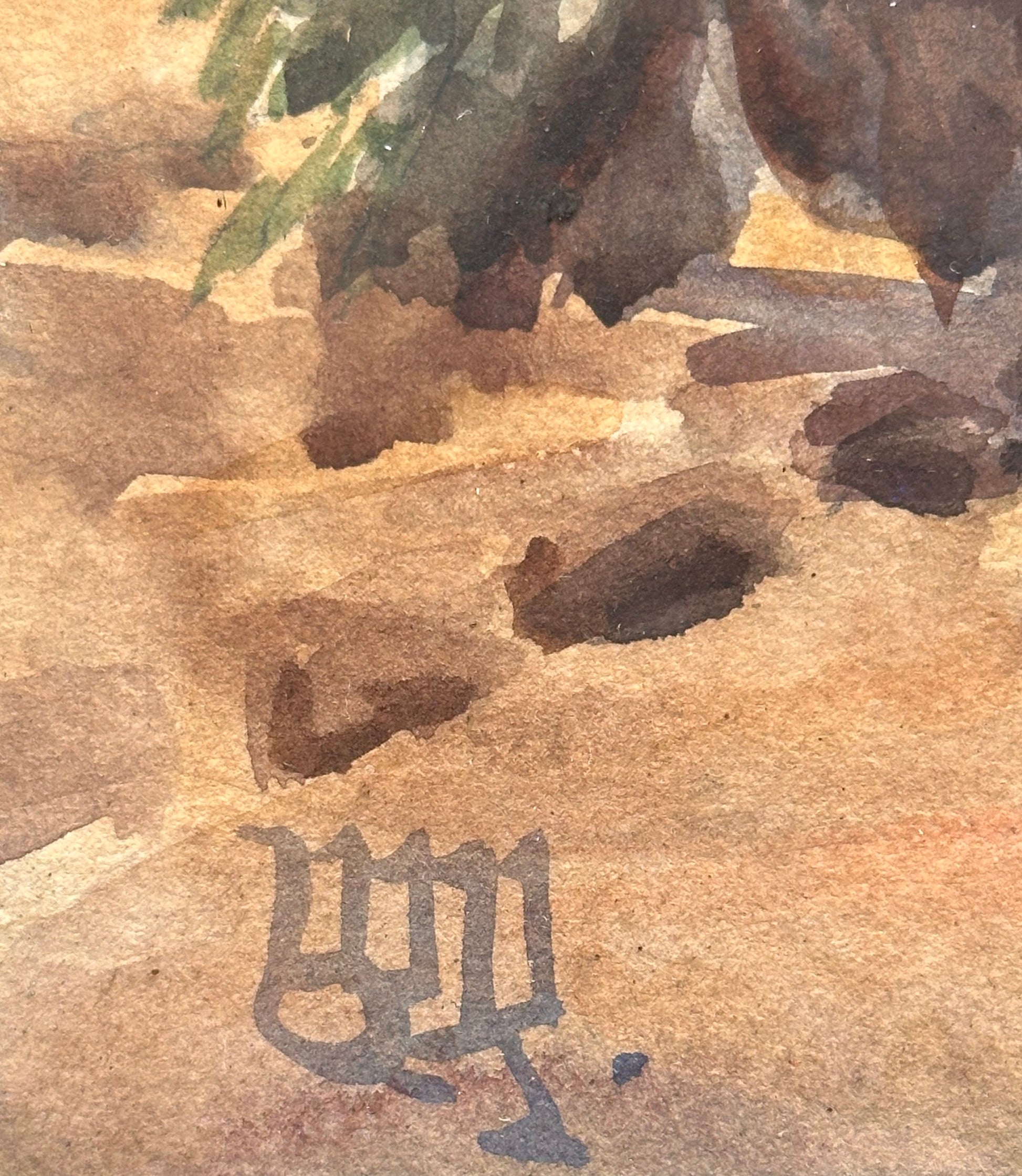 This watercolour shows a woodland path, lush with rhododendrons and dappled light. It could well have been painted in the Himalayas, where she travelled and which she documented, although it looks remarkably similar to paths in places such as Mount Usher and Kilmacurragh in Co Wicklow, or Fern Hill in South County Dublin. However, based on the other works that we acquired, all of which are of Indian scenes, this picture most likely was made in the Himalayas.