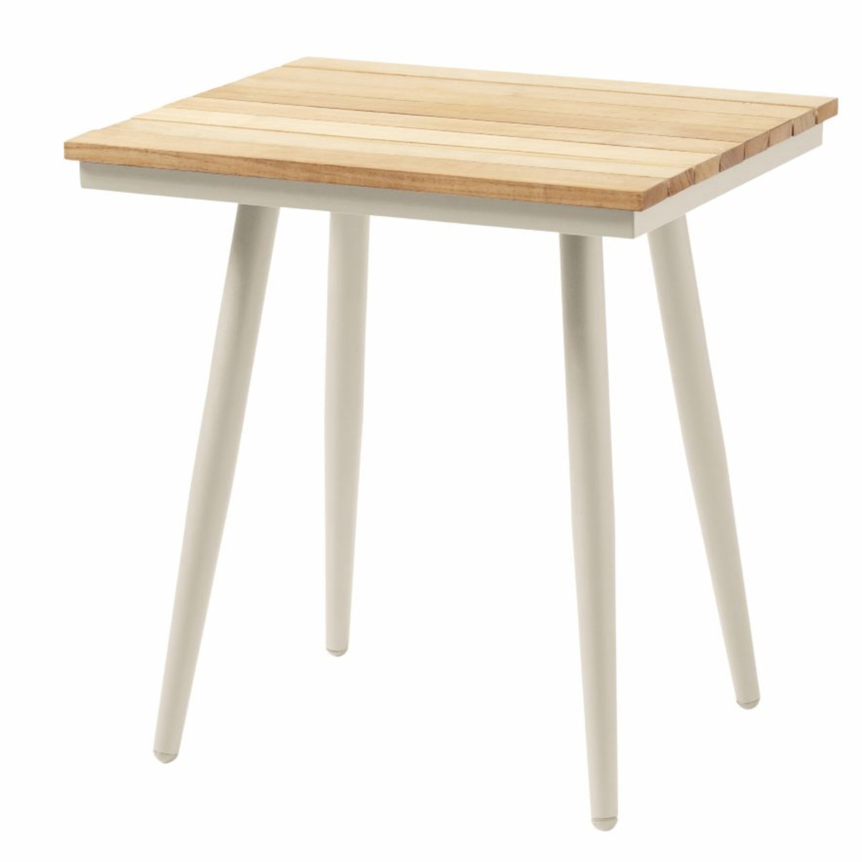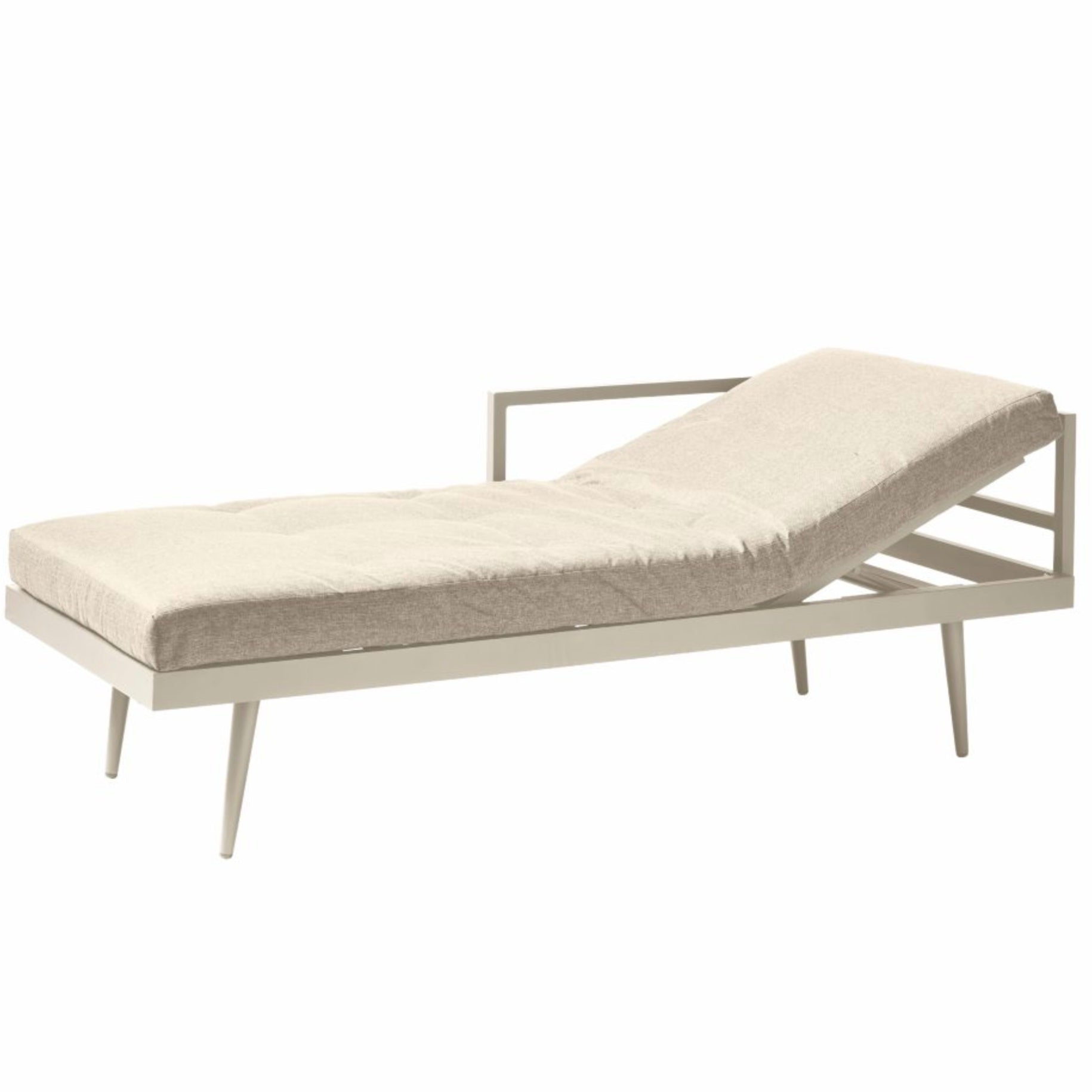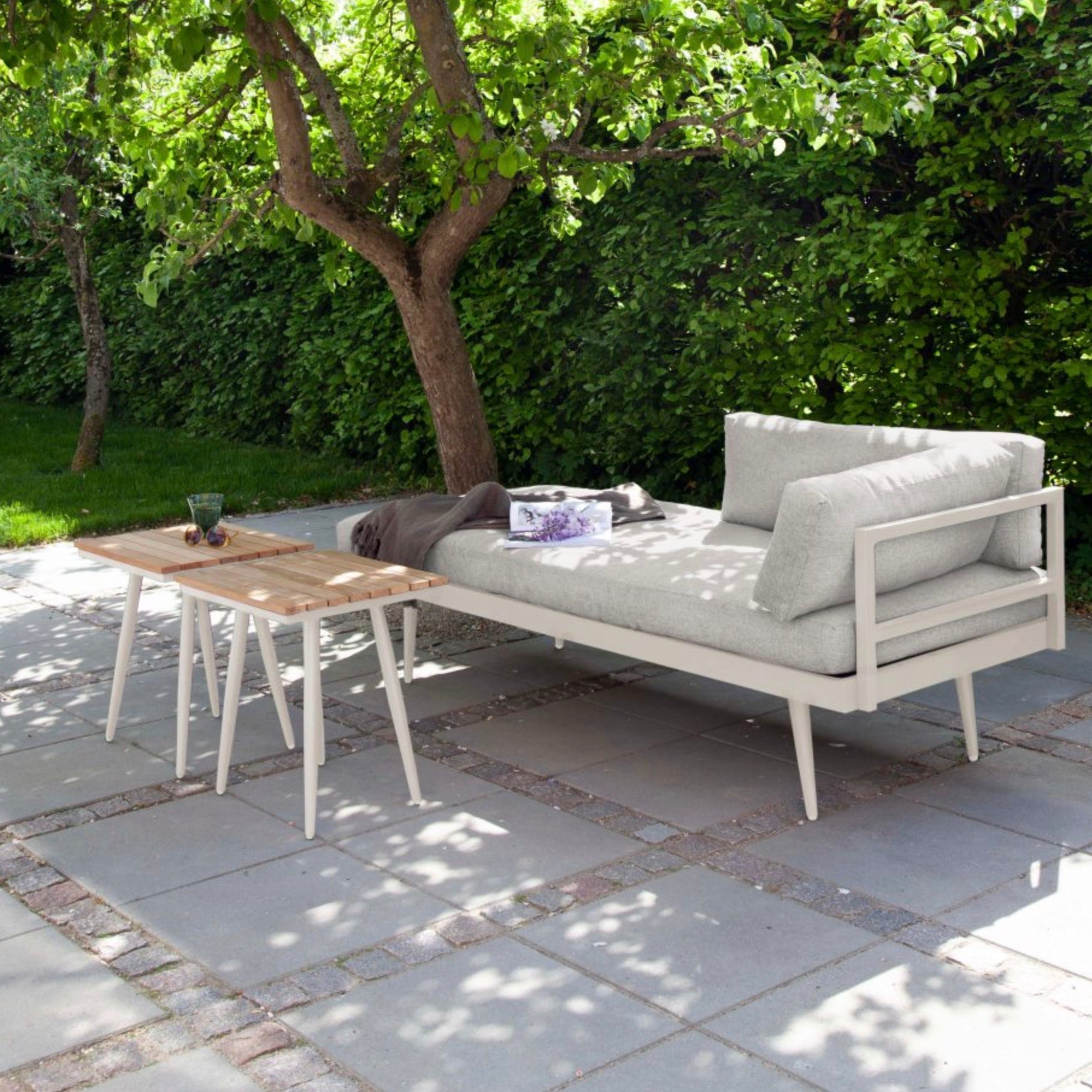 Additionally, add the 'Rio' side table, as shown in the photo. The side table is made from the same 'sand' coloured powder-coated aluminium, with teak slats. It's the perfect companion for the daybed.